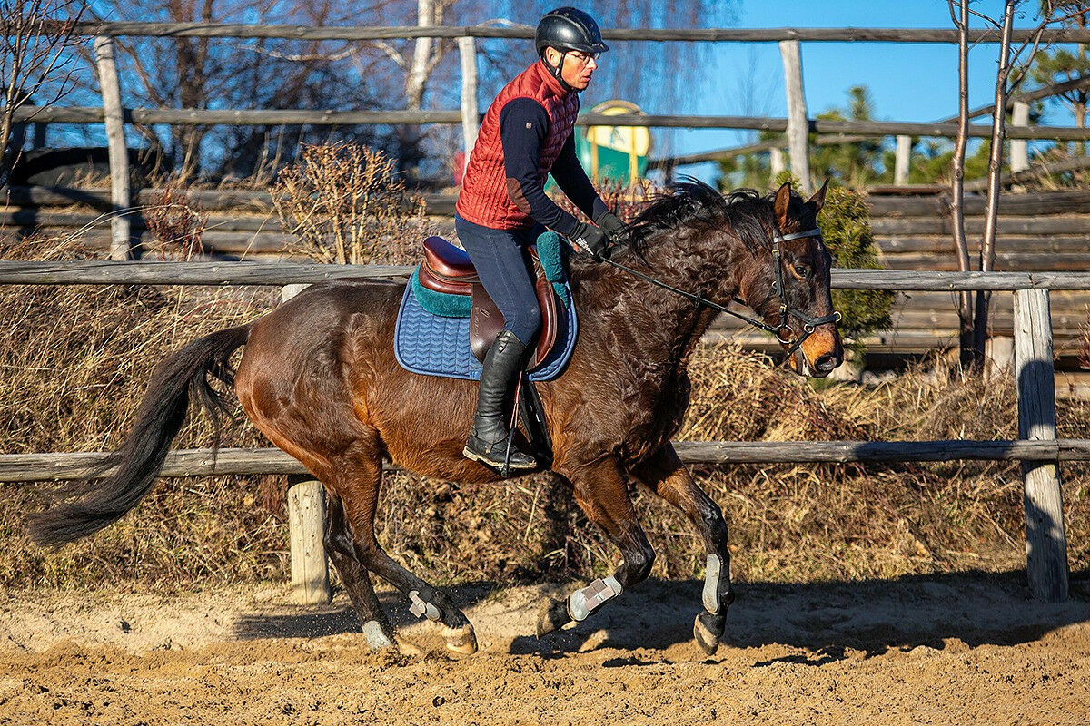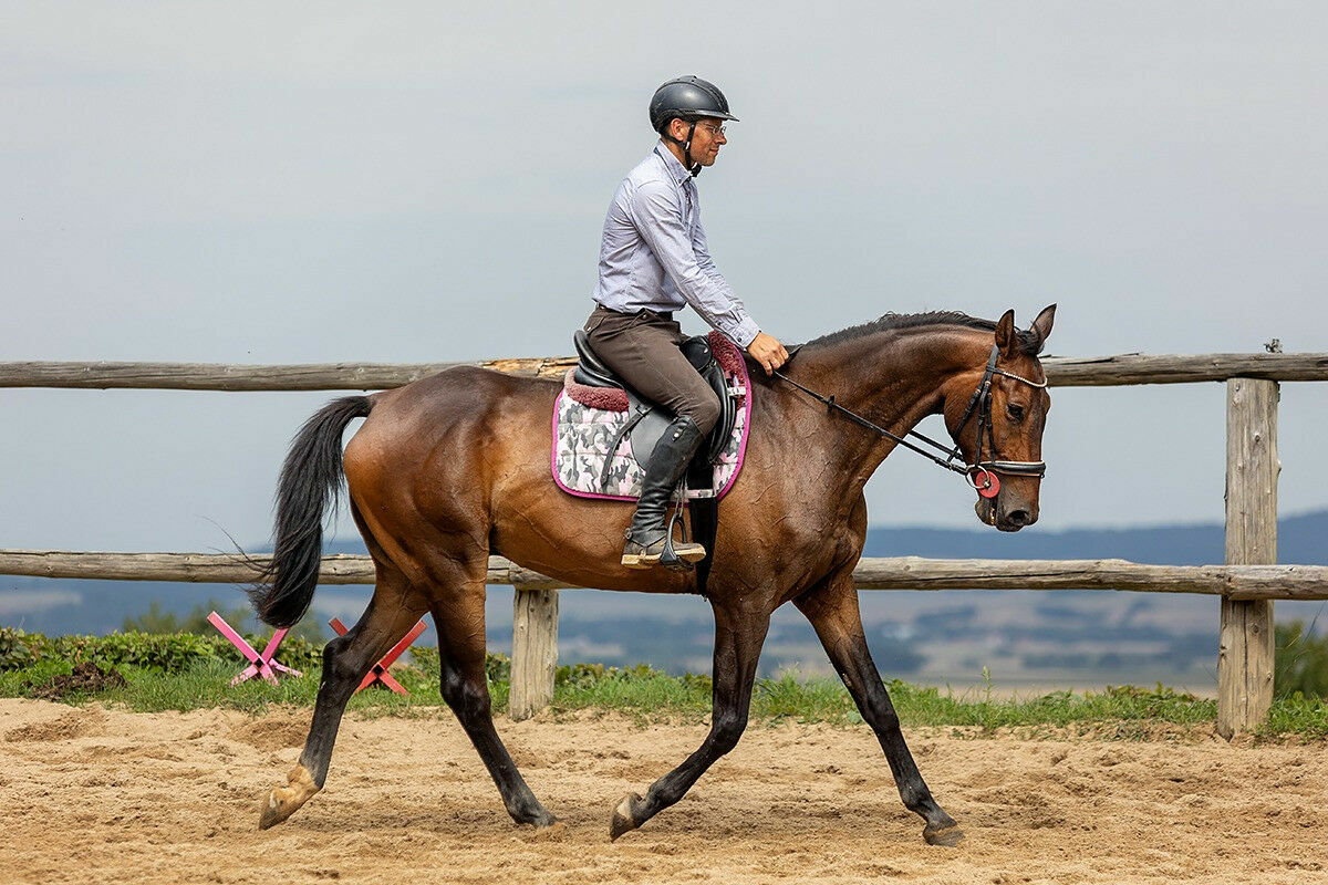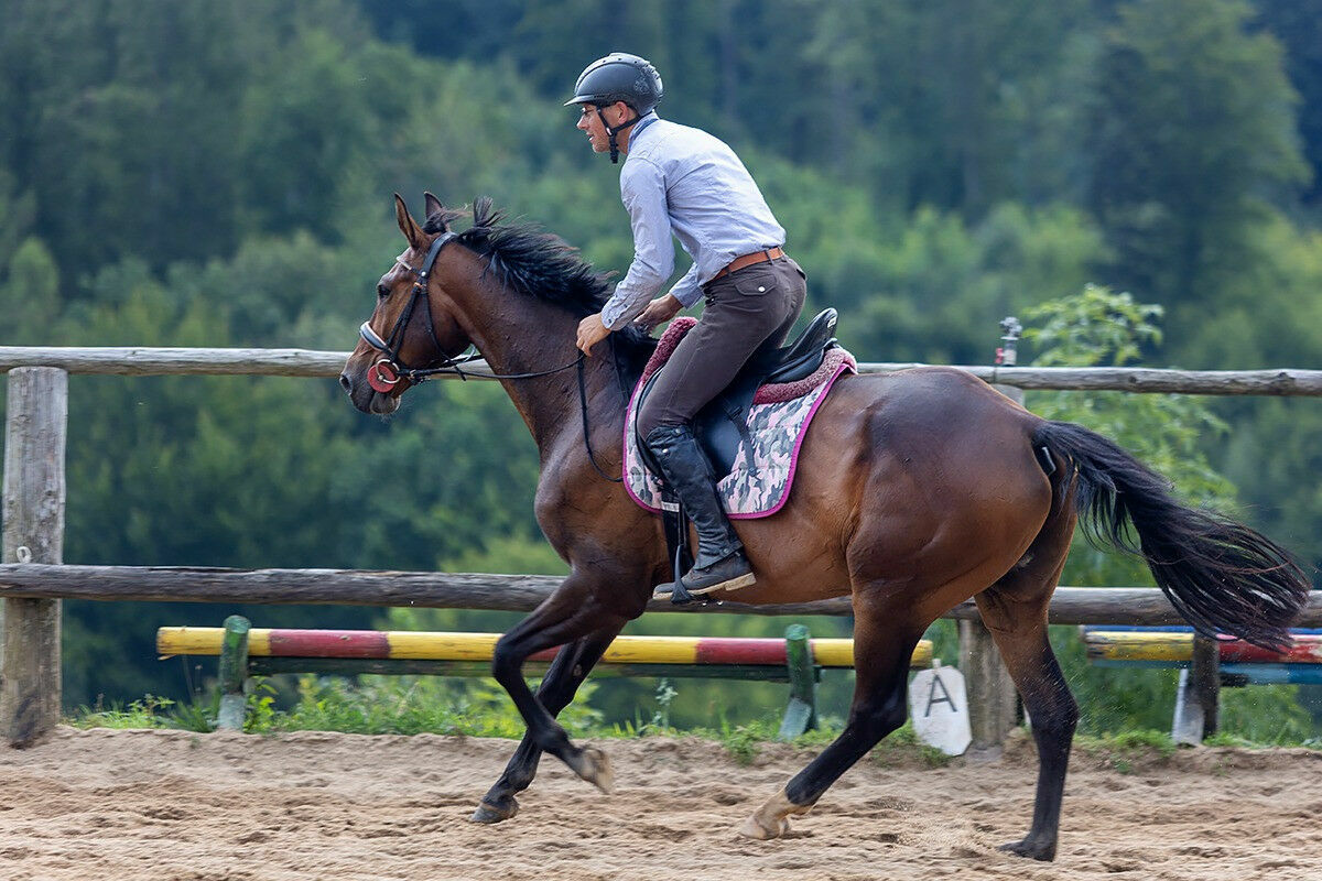 Chodzi na lonży pojedynczej i podwójnej, chodzi w teren. Koń jeżdżony na co dzień przez Adama Susłowskiego. Koń w podstawowym treningu od sierpnia chodzi 2 razy w tygodniu. Naszym celem nie jest jeżdżenie codziennie a przygotowanie wszechstronne konia, aby dobrze rozumiał pomoce, aby był miły na kontakcie, poruszał się z umiejętnością wydłużania szyi i grzbietu. W jeździe delikatny, wsłuchany, bezpieczny, dość aktywny galop ale nie niebezpieczny. Ma za sobą treningi skokowe , również wyjazdowe do Ośrodka Biały Las, zero strachu przed kolorowymi przeszkodami. bezproblemowy w transporcie. Przyszły jeździec powinien znać i akceptować żwawszy galop. Nie wymaga inwestycji w leczenie (kopyt, zębów itd.). Posiada aktualne zdj RTG
