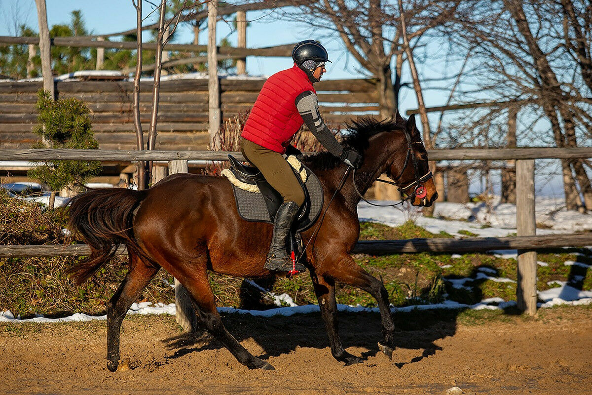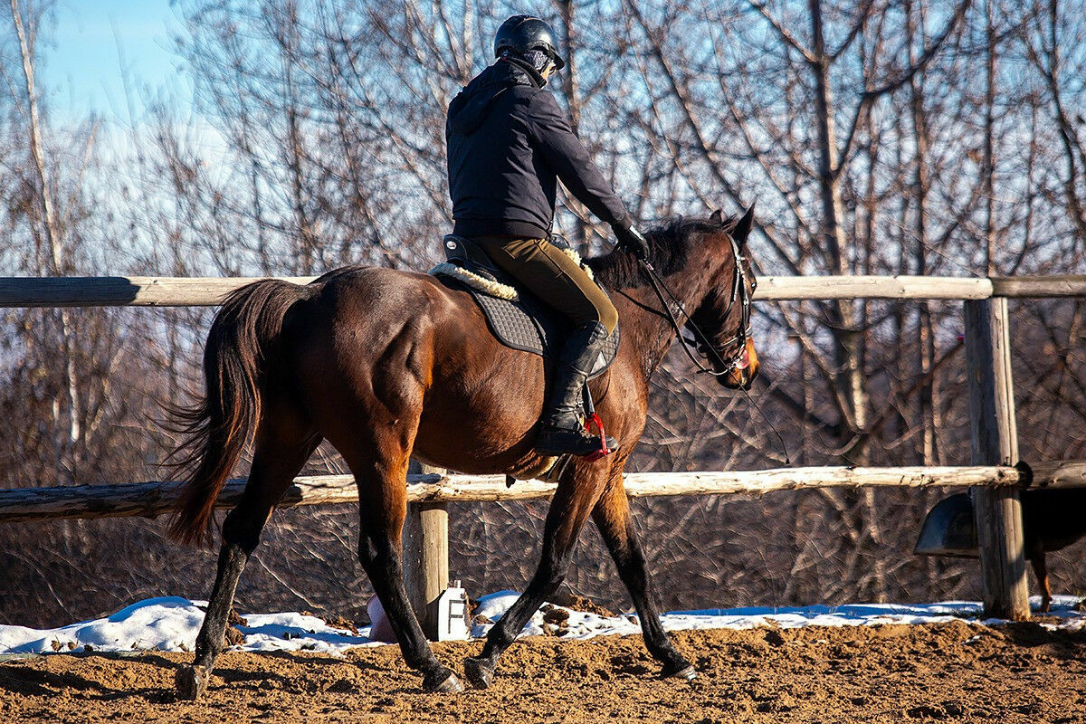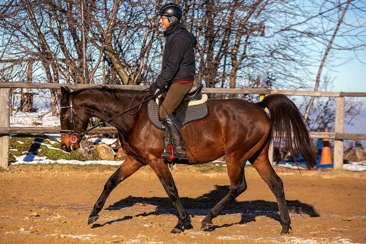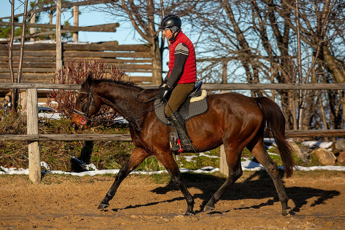 Chodzi na lonzy pojedynczej i podwójnej, chodzi w teren. Koń jeżdżony na co dzień przez Adama Susłowskiego. Koń w podstawowym treningu od października, chodzi 2 razy w tygodniu. Naszym celem nie jest jeżdżenie codziennie a przygotowanie wszechstronne konia, aby dobrze rozumiał pomoce, aby był miły na kontakcie, poruszał się z umiejętnością wydłużania szyi i grzbietu. W jeździe delikatny, wsłuchany, bezpieczny, dość aktywny galop ale nie niebezpieczny. Bezproblemowy w transporcie. Nie wymaga inwestycji w leczenie (kopyt, zębów itd.). Posiada aktualne zdj RTG
